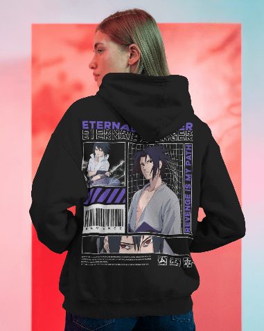 Cold. Focused. Unstoppable. The Eternal Avenger Hoodie captures the raw emotion and unmatched energy of a true shinobi on a path of vengeance. With glitch effects, barcode design, and grayscale panels that highlight the Eternal Mangekyō Sharingan, this piece brings anime streetwear to a whole new level.