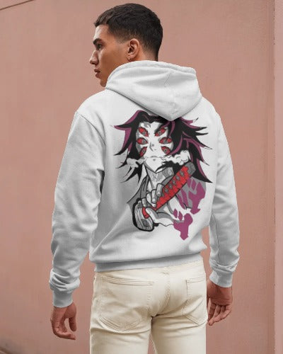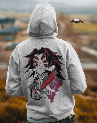 Embrace the darkness with the Kokushibou Blood Moon Hoodie—a bold tribute to the Upper Moon One himself. Featuring a vivid, full-color graphic of Kokushibou gripping his iconic blade, this hoodie captures his eerie presence and unmatched power. Made for fans who walk the edge between style and chaos.